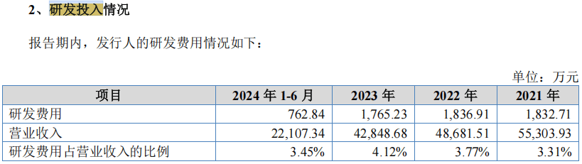 荣鹏股份在此后发布的2024年年度报告中披露,2024年全年该公司的研发费用为1944.9万元,占当期营业收入的比例分别为3.79%。